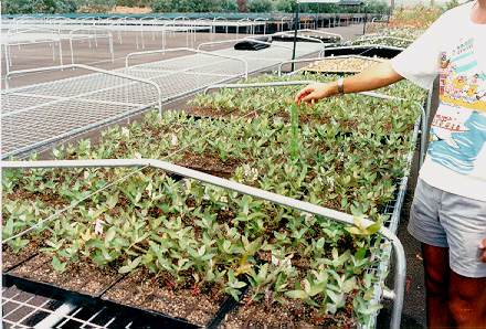 1988 Studies on immobilized mycorrhizal fungi commence. New collaborations with Alcoa of Australia, the W.A. Department of Conservation and Land Management, and Bunnings Treefarms Pty. Ltd. All organizations were supplied trial inoculum. Nursery trials conducted at Alcoa of Australia' nursery. Cost-benefit analysis of the use of inocula in W.A. undertaken for subsequent use as the basis for negotiations on a pricing structure.