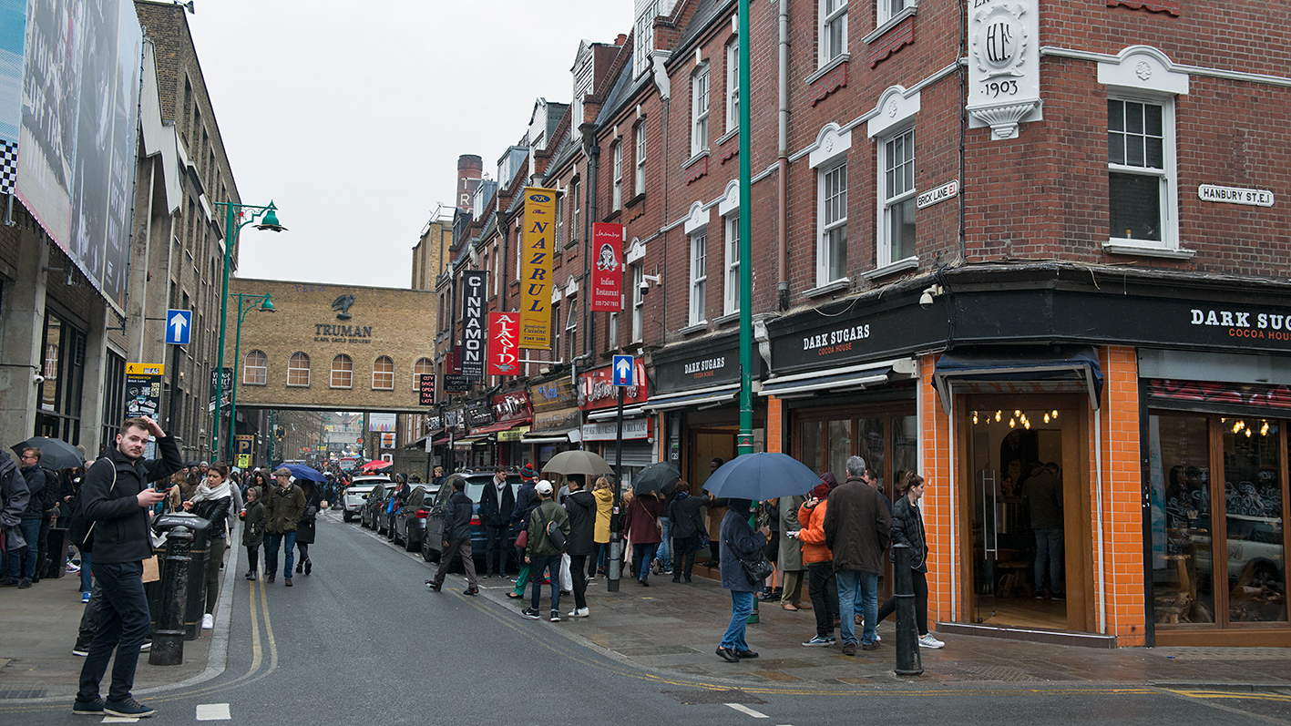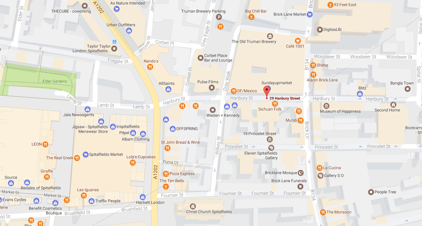 The number 29 marks the spot where the now demolished dwelling once stood. The Truman Brewery now occupies the area.