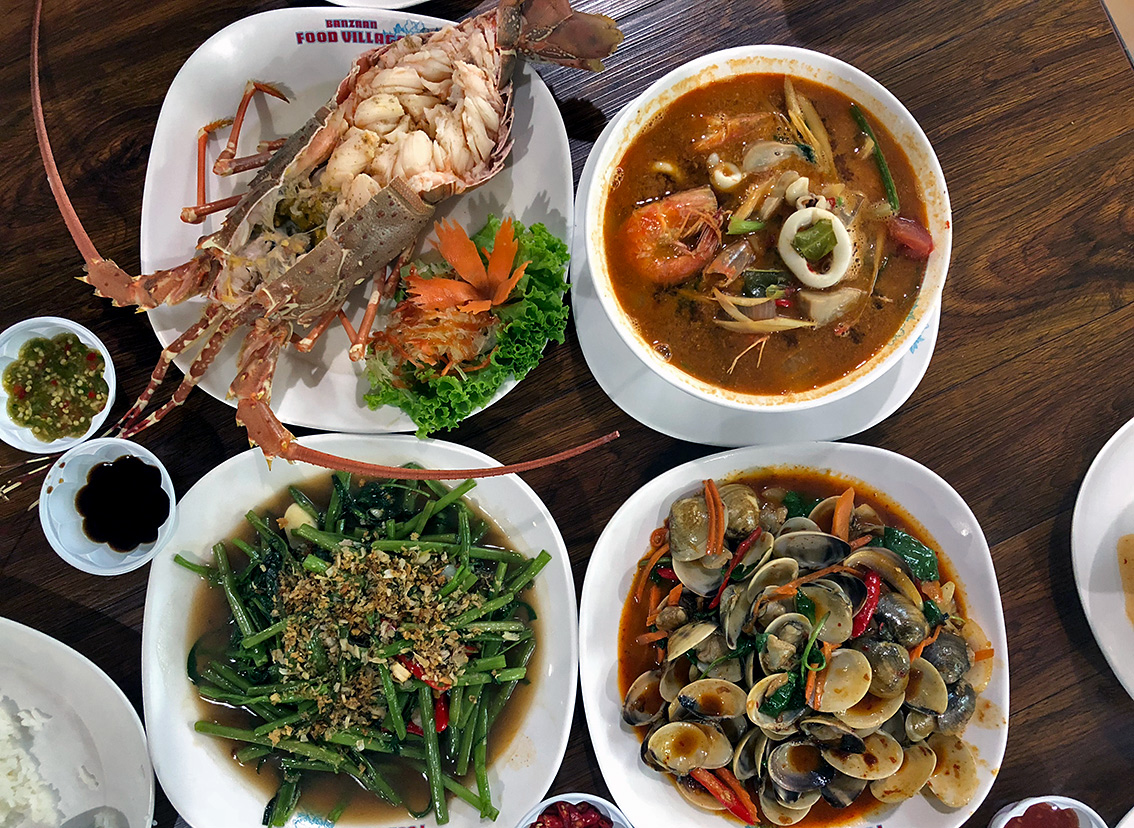 Phuket Fresh Andaman Sea food bought from the Ban Zaan Fish Market downstairs transformed into these dishes at the Ban Zaan Food Village