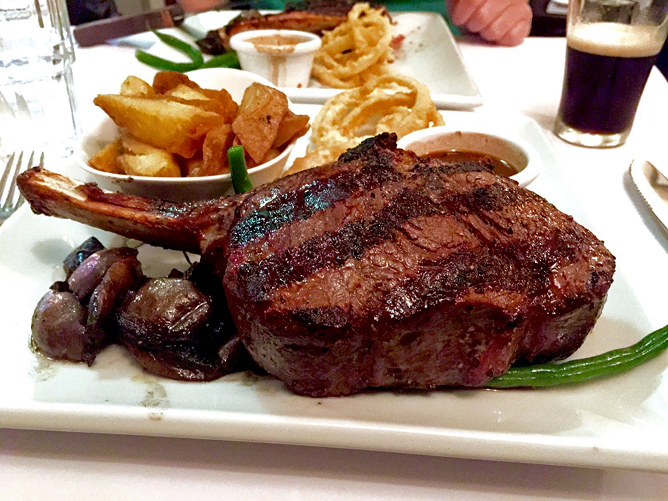 30-day dry-aged 500 g rib-eye tomahawk steak-on-the-bone AUD48