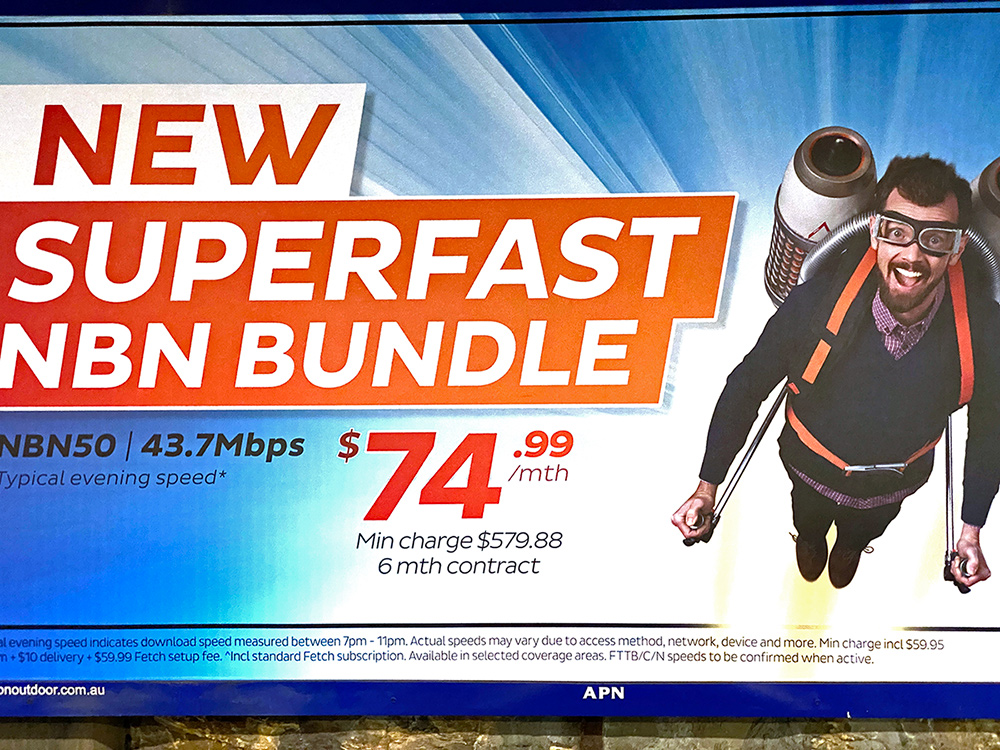 An NBN advert at a rail station in North Sydney. I am extremely surprised to learn that the NBN typically offers a broadband speed of 100 Mbps. In Kuching I am getting a service (Unifi) with 500Mbps.