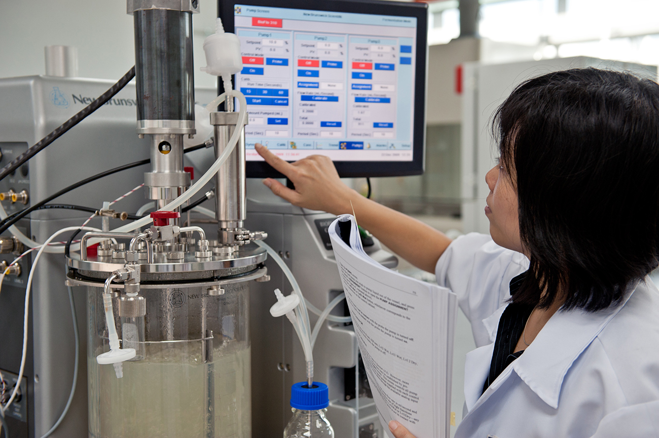 Tze growing fungal mycelia in a 10 L NBS BioFlo Stirred Tank Bioreactor