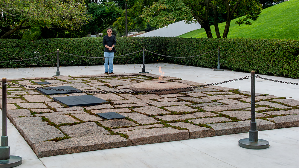 ![]() August 2012: "Mr President, I am here." President Kennedy is buried here a short distance away from the original burial site. Alongside him is his wife Jacqueline and two children. An eternal flame burns for him. You may wish to read one one of the many biographies on JFK: "John F. Kennedy: An Unfinished Life 1917 - 1963" Robert Dallek (2013) ISBN-10: 0141976587 |