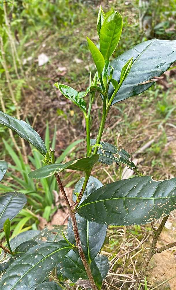 At the village, only some people could tell where some tea bushes might be found. We were pointed up a gravel track which supposedly was built to service the tea plantation. The track led up to the hills and so there was credence to our advice. Indeed, Stephen recalled seeing the side of the hills covered with tea bushes years ago. We walked our way up the track, seeing little by way of tea until about 20 minutes into our walk we came across an area cleared for a small farm. We ventured inside and I found one tea bush.