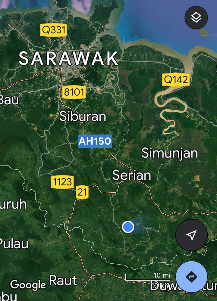 The blue dot on the Google map above marks where we stopped to look for tea bushes at Kampung Mayang Mawang.