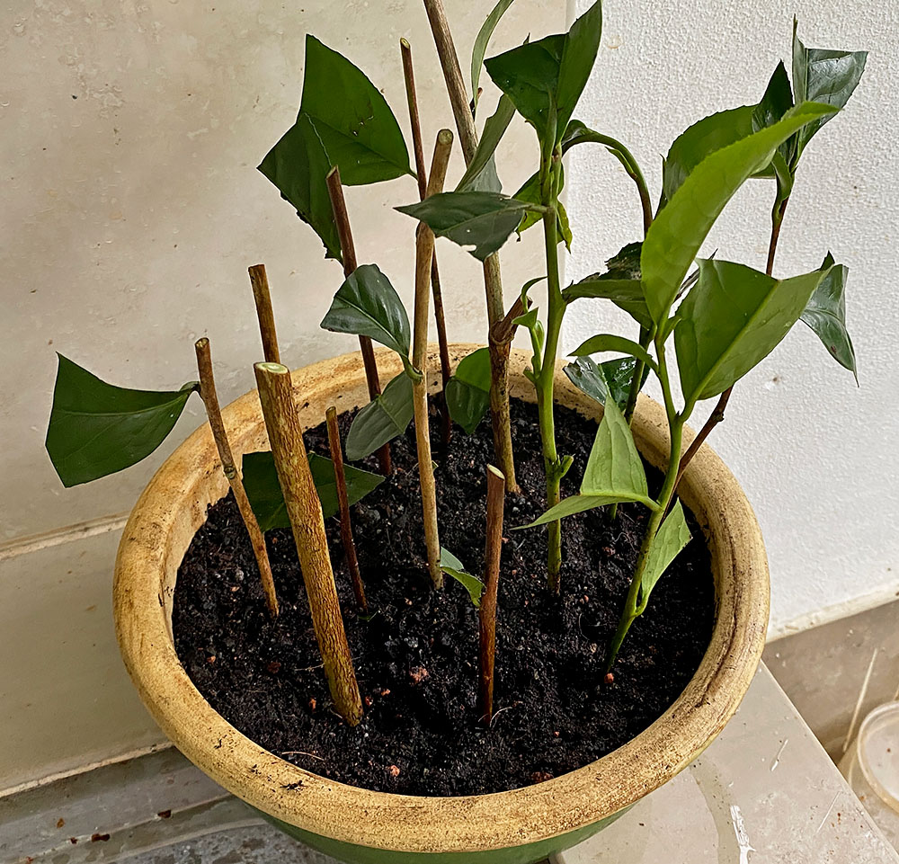 Cuttings of various ages I made from our sample. Stephen has also made a set at his place. We wait to see if the cuttings strike.