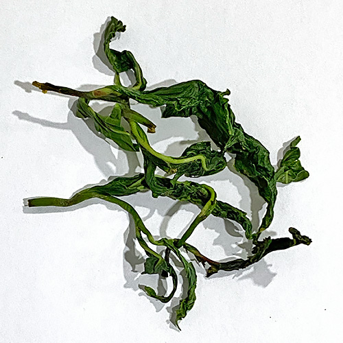 The withered shoots after several minutes of hand rolling. This