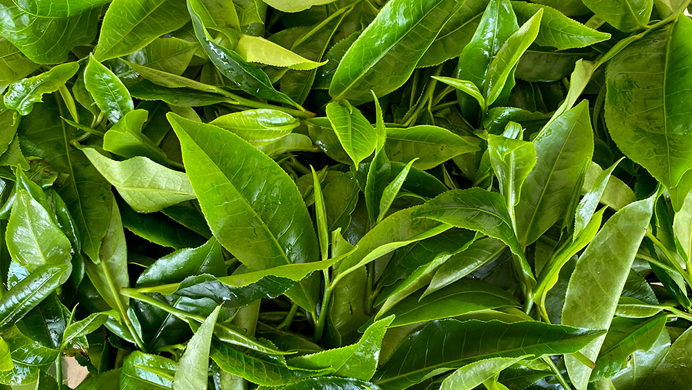 Freshly plucked tea shoots. We were able to get more of the regulation "two leaves and a bud" this time because we had more time on site and we found more bushes than on the previous two trips.