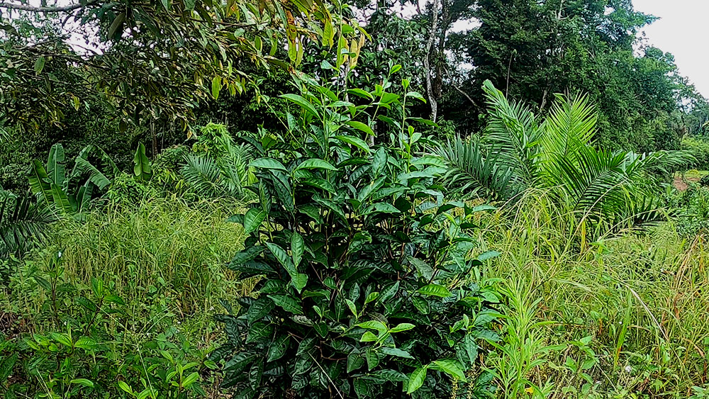 Surviving tea bushes are randomly found interspersed amongst the farm crops.